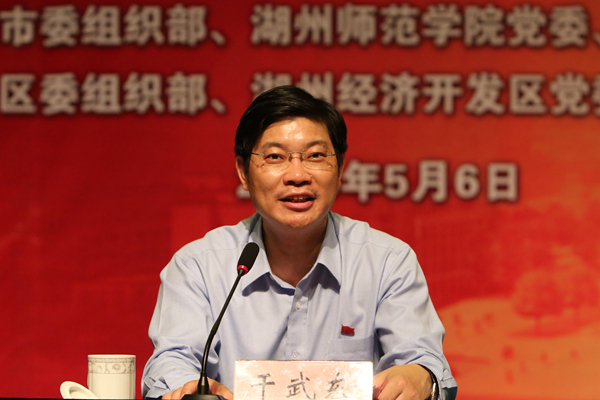 干武东在致辞中指出,今天的启动仪式标志着“结对共学共做,携手共建共进”活动全面展开,这也是推进湖州市“两学一做”学习教育的一项重要举措。在全体党员中开展“两学一做”学习教育,是党中央作出的一项重大决策部署,是推动全面从严治党向基层延伸的有力抓手。在学习教育中开展结对共学共做活动,是推动高校和中心城区基层党组织“资源共享、优势互补、互促共进”的有效载体。希望广大党员在共学共做中锤炼党性、增长才干,服务群众、树立形象,争当先锋、赶超发展。他强调,要充分发挥高校的党员人才优势,共同开展技术攻坚、人才培育、咨询服务,切实以推动改革发展的成效来检验学习教育的效果。