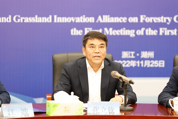 张立钦在表态发言中对第一届理事会提出三点要求:一是团结奋斗,扎实推进联盟自身建设。立足自身实际,整合各方资源,规范理事会运行机制,积极牵头各成员单位开展活动,努力提升筹建效率和质量。二是围绕中心,踊跃投身长三角林业创新建设。聚焦林业高质量发展关键领域与林业全产业链融合发展共性技术,全面开展理论研究、科技创新、示范推广和人才培养。三是服务大局,全力助推区域经济社会发展。在服务国家和区域发展的大局中找准自身定位、在实干争先中找准奔跑赛道,围绕共同富裕的重大理论与实践问题,聚合力、提效力、强内力。