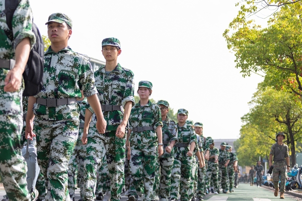 思政课后,高杰进行拉练动员并整队报告,随着许慧霞一声“可以出发”口令,各营连新生步伐整齐、精神抖擞地踏上拉练征程。校领导许慧霞、丁敢真,军训领导小组成员、全体军训教官、教导员随队前行,与新生同行8公里,以实际行动诠释“师生同心”的育人理念。